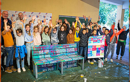 - Ça pourra être un banc sur lequel on discute, on résout des conflits, on se raconte des blagues, on retrouve ses copains, on s'assoit pour dessiner lire ou réfléchir.