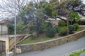 Jardinet composé d'essences méditerranéenes tels que des palmiers, oliviers. La place est agrémenté de muriers platanes.
