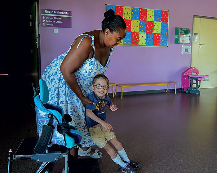 Près du Cap, à l’école Georges-Roux, certains sont en situation de handicap moteur et, lors de la pause méridienne, Jovanie, Anaïs et Élodie sont à leur chevet. « Je suis votre préféré », rigole Adam, 10 ans, très taquin avec celles qui l’accompagnent depuis plusieurs années.