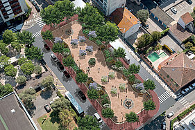 Ici, la volonté est d’apporter une nouvelle fraîcheur au quartier par des jeux de transparence et de perspectives sans diminuer le nombre d’arbres. Pari tenu. 40 arbres seront plantés. Soit 10 de plus que dans l’ancienne configuration. Des espèces de haute futaie produiront une zone ombragée importante le long des trottoirs et au coeur du square. Jacarandas et Tipuanas apporteront au printemps une superbe floraison dans une harmonie de jaune et de bleu.