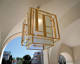 Le bâtiment de 24 000 m2 se déploie dans un environnement paysager de jardins méditerranéens. Il abrite une résidence de 35 appartements très haut de gamme qui offrent un confort contemporain et une décoration Art Déco intemporelle et raffinée. Les bas-reliefs sculptés dans le plâtre et représentant la Pinède et l’environnement méditerranéen ont été réalisés par un artisan d’art français.