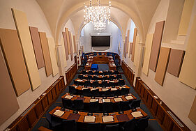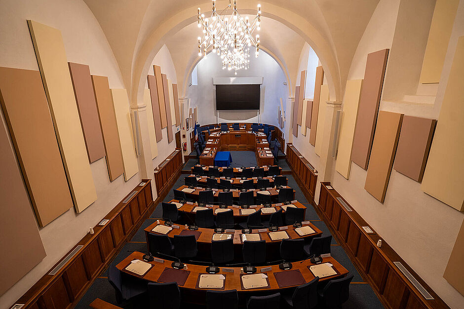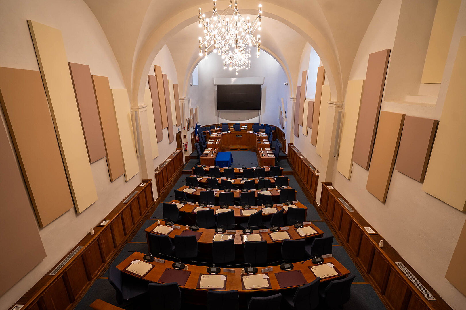 La dernière campagne de rénovation, en 2023, a permis d’installer des caméras, des micros, des écrans et des dispositifs d’insonorisation pour améliorer les conditions de réunion au sein de la salle et de retransmission du conseil municipal sur les réseaux sociaux de la Ville.