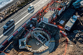 Pour réaliser cette prouesse technique, un microtunnelier a creusé deux trous d’un mètre de diamètre sur une distance de 60 mètres. De part et d’autre, deux puits ont permis d’introduire et de sortir cette machine spécifiquement conçue pour ce chantier (voir encadré).