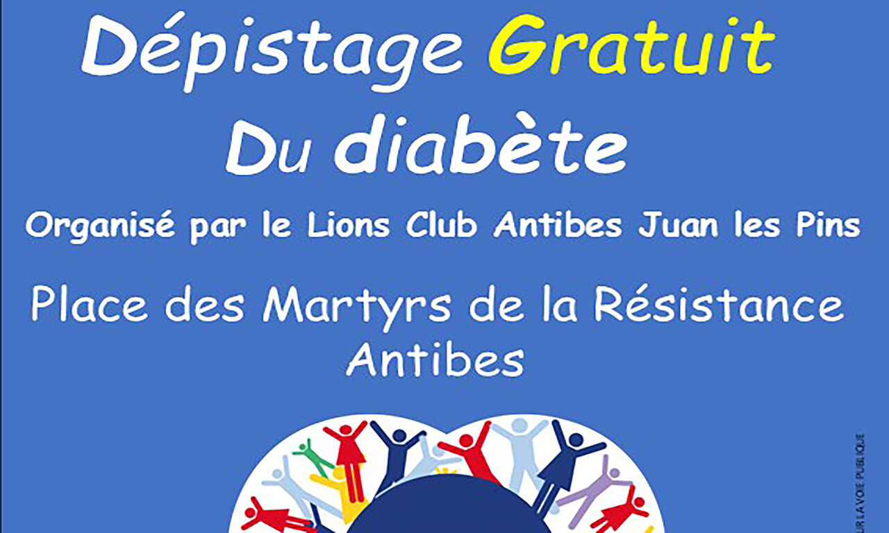 Samedi 18 avril, le Lions CLub d'Antibes Juan-les-Pins vous propose un dépistage gratuit du diabète.
