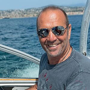“Je restais toute la journée sur la plage les yeux rivés vers le large, rempli d’admiration pour ce spectacle extraordinaire. À 9 ans, les dés étaient jetés, je savais déjà que je serai moniteur de ski nautique. À l’époque, dans les années 60, le port Gallice n’existait pas encore, on rentrait les bateaux au port de Golfe-Juan. C’était le seul moment où mon père m’autorisait à faire du ski... Mais pour éviter de gaspiller l’essence j’avais interdiction de tomber. Alors, la première fois, je me suis accroché comme un fou au palonnier et à la dernière bouée j’ai lâché la corde... J’avais rempli le contrat !”