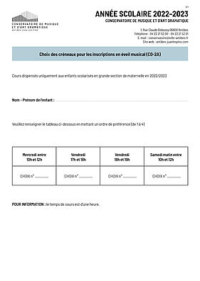 Choix des créneaux pour les inscriptions en éveil musical