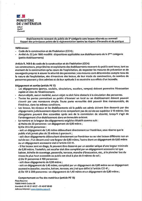 Retrouvez ici la circulaire ministérielle rappelant les principaux point de la réglementation contre les risques d'incendie et de panique