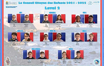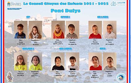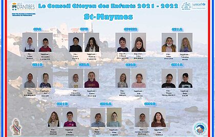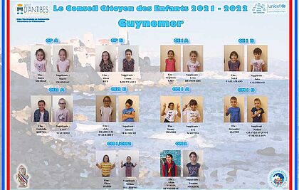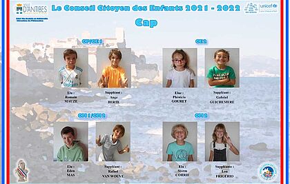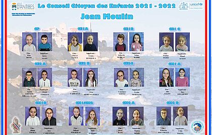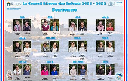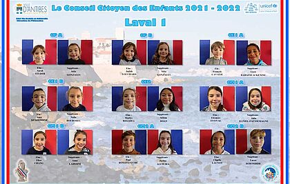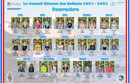 La ville d'Antibes Juan les Pins vous présente les enfants élus de chaque école, ainsi que les grands élus du CCEA qui représenteront leurs camarades et feront leurs propositions le 25 juin prochain au Conseil Municipal.