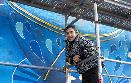 À partir de 2014, elle transpose son univers créatif sur des supports extérieurs et se lance dans le muralisme. Récemment, elle a rénové la façade de la "Casa Chilota" à Santiago, en partenariat avec le CFA du bâtiment d'Antibes.