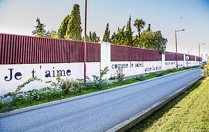 Antonio Segura Donat est un artiste espagnol connue pour son travail textuel et ses aphorismes poétiques ou féministes collés dans la rue. Elle a transformé ici, ce long mur en une déclaration sentimentale et philosophique.