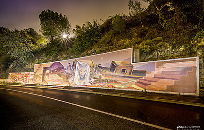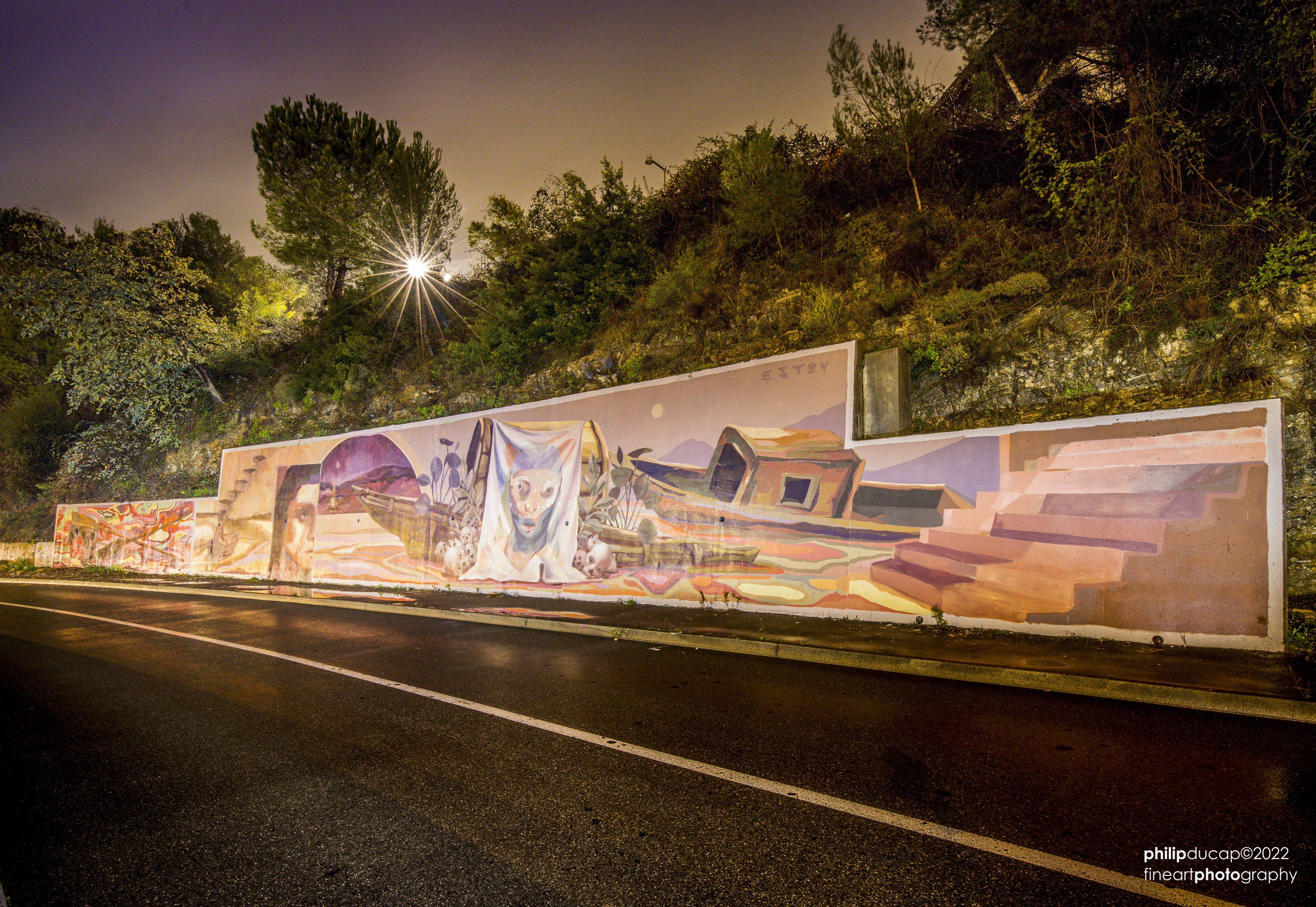 Rodrigo Estoy est un artiste chilien surréaliste spécialisé dans le muralisme. Ses créations portent essentiellement sur des scènes de vie quotidienne transposées dans un univers mystique et poétique. Reconnu pour son sens de l’esthétisme et sa capacité à mener à bien ses chantiers, Rodrigo Estoy s’est notamment vu confier des projets de grande envergure par le Ministère de la Santé chilienne ou le Métro de Santiago.