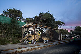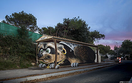 L’œuvre murale devient une œuvre photographique grâce à des mises en scène insolites de l’artiste.