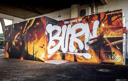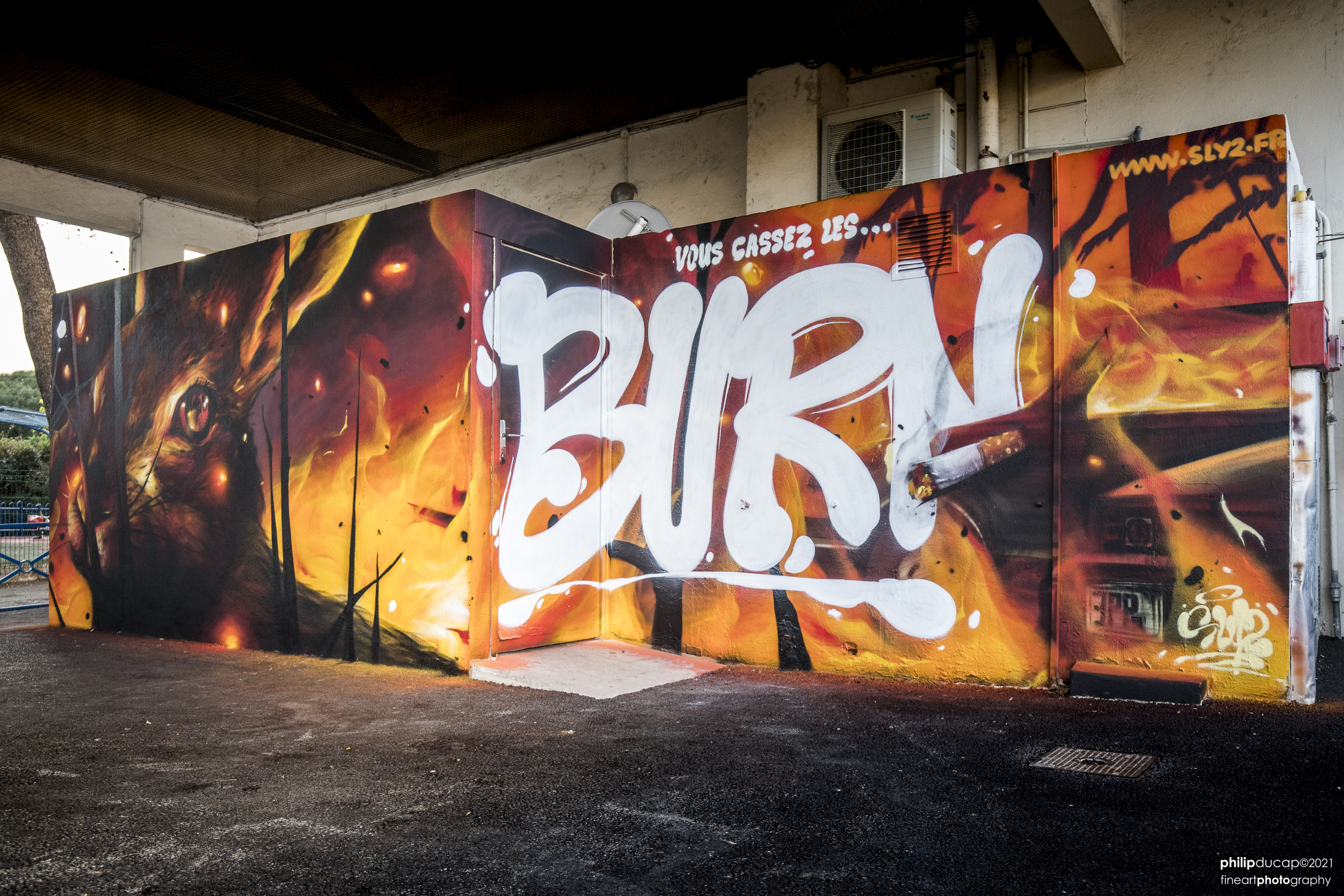 Né en 1984, Sly2 est un artiste pluridisciplinaire autodidacte, diplômé en production imprimée. Il découvre le graffiti à la fin des années 90, et devient un membre fondateur du groupe 3PP. De plus en plus sollicité, sa passion le fait voyager dans le monde entier. En perpétuel questionnement sur le monde qui l’entoure, ses œuvres sont à l’image de sa personnalité: spontanées, instinctives, et pleines de talent. Il choisit de partager ses œuvres afin d’établir un dialogue. Si les murs ont des oreilles, ils peuvent aussi parler…