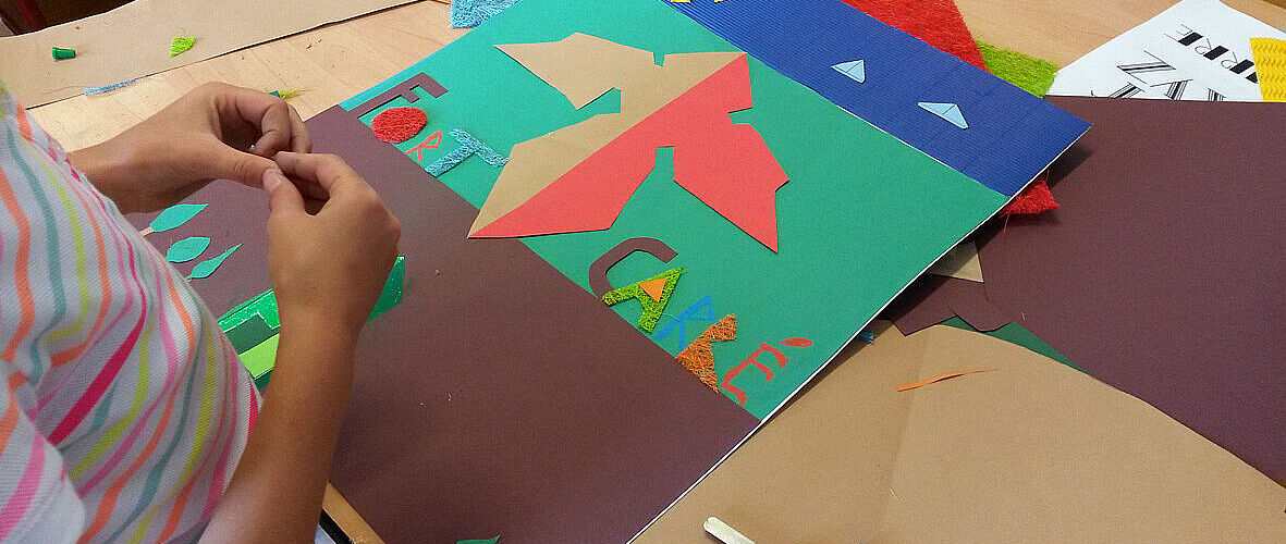 Réalisation d'un fort grâce à la technique du collage.