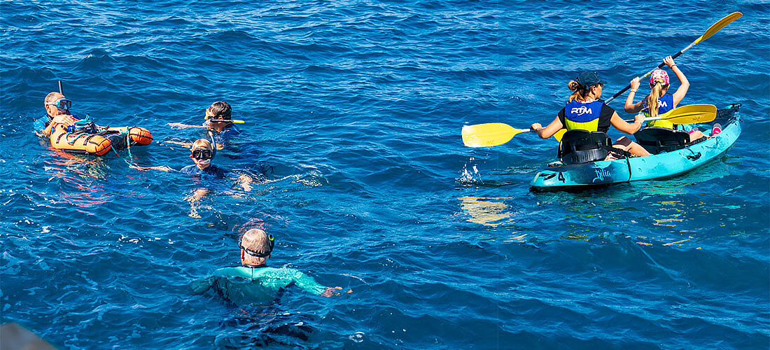 Pour aller plus loin dans la découverte de nos richesses marines, nous vous proposons des randonnées subaquatiques (Palmes-Masque-Tuba) et en kayak au pied du site