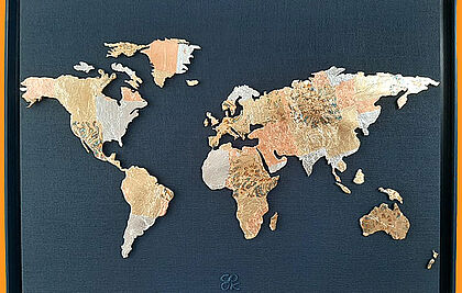 Je suis heureux lorsque je suis dans la nature, et ce bonheur profond je le transfert dans mes tableaux en utilisant des matériaux naturels et organiques : le sable, les épices, les oxydes de métaux comme le bronze, le cuivre et le fer. Sur les tableaux en relief, je peux aussi mélanger la terre, la paille ou les algues.