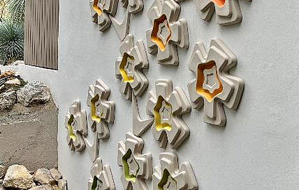 BAS-RELIEFS ET CLAUSTRAS : Son système constructif modulaire permet des combinaisons infinies pour une œuvre unique.