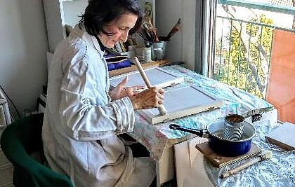 Je serai ravie de vous montrer dans mon atelier les matériaux que j'utilise et comment je les transforme pour concevoir une œuvre, du bois jusqu'aux dernières couches de peinture. Je vous expliquerai également quelques éléments de la symbolique.