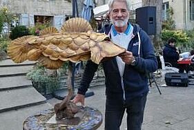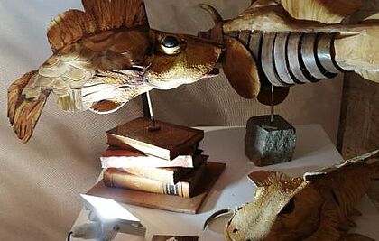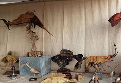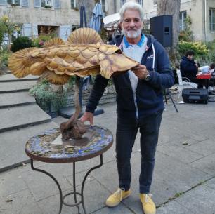 Sculpteur à partir de matières recyclées, bois, cuir, métal