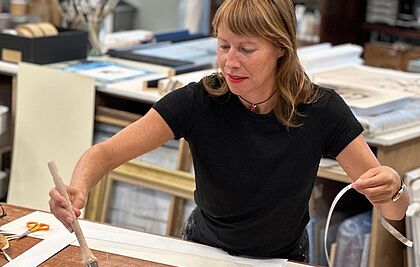 Choisir un encadrement sur mesure ? C’est la touche finale de la décoration intérieure. J’aime travailler le volume, la profondeur, les perspectives, choisir les matières, définir l’association des couleurs, bref, confectionner une pièce unique.