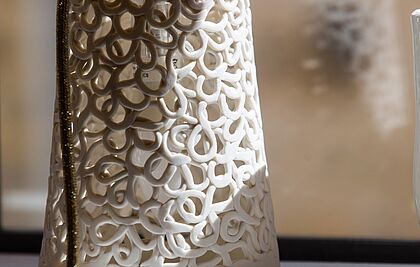 Céramiste diplômée de l'Ecole des Beaux-Arts de Vallauris, Muriel LOVO a ouvert son atelier au cœur d’une nature verdoyante antiboise. Des questionnements sur les sources, les racines, l’amènent à former des dentelles de porcelaine, fils de vie tissés, résultat d’un long processus de recherche et de pensées intérieures.