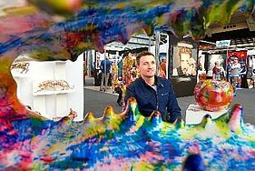 C'est à Antibes qu'il a choisi d'installer son atelier Art Design Azur. Chaque pièce est unique et peinte à la main, signée et numérotée.