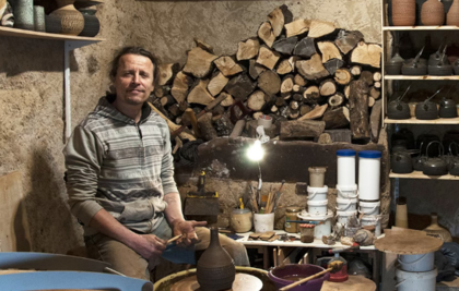 Autodidacte, je me suis rapidement dirigé vers la technique de la terre craquelée. Je travaille cette technique venue d'extrême orient depuis 6 ans avec un grès noir. Sa difficulté est qu'une grande partie du tournage se fait avec une seule main. Le rendre très brut, entre pierre de lave et écorce d'arbre calcinée. Afin d'atténuer cette brutalité, j'essaye de produire des formes élégantes accompagnées d'un émail qui adoucit certaines parties.