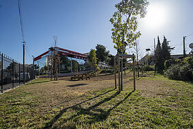 Ce jardin arboré se situe près d'une aire de jeux pour enfants. Il comprend des bancs.