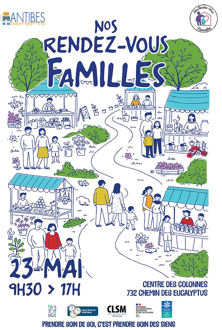 Vous êtes parents d'enfants scolarisés en maternelle et/ou en élémentaire dans les écoles d'Antibes Juan-les-Pins, venez découvrir, échanger, pratiquer et partager autour d'ateliers et d'activités ludiques, complètement gratuits, accompagnés par des professionnels, le samedi 23 mai de 9h30 à 17h au centre des Colonnes.